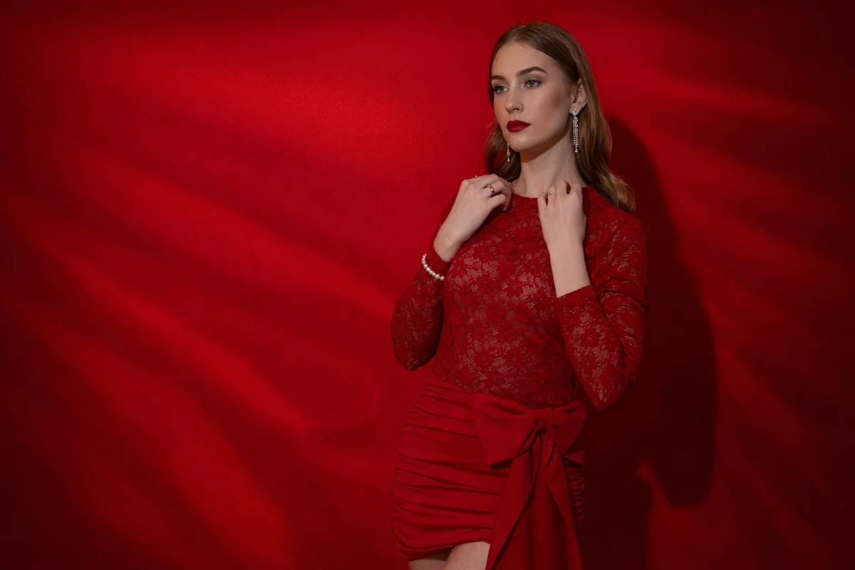 A stunning red lace bodycon mini with sheer elegance and a statement waist bow that turns every entrance into a moment.