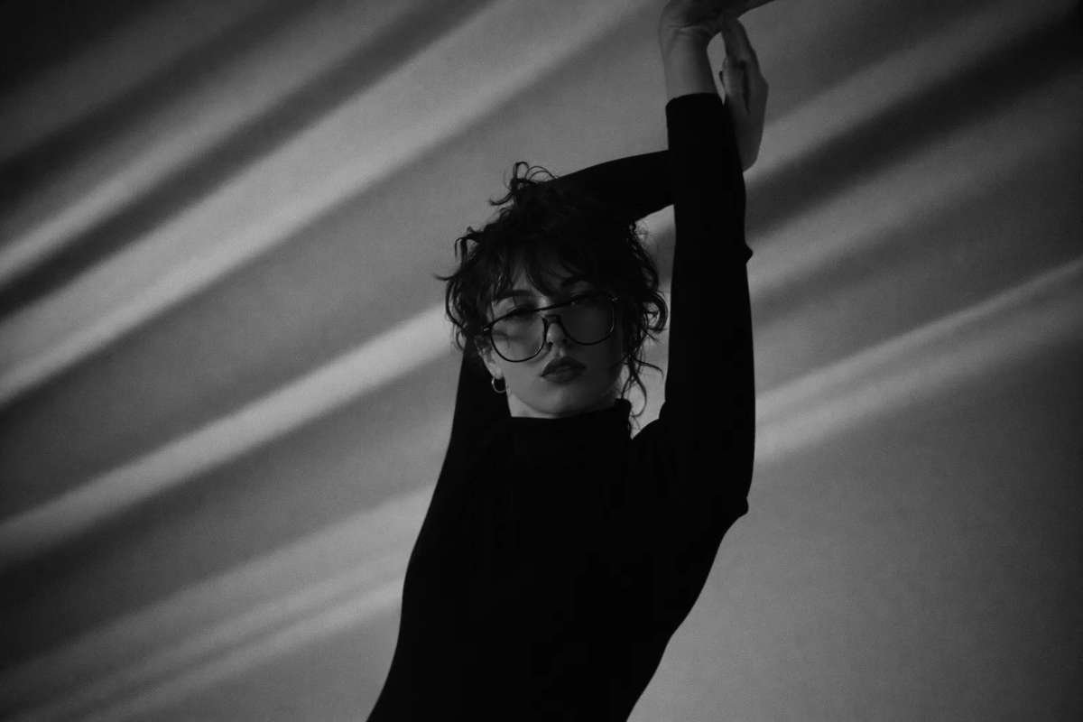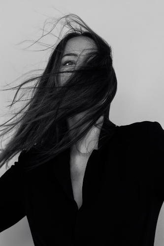 A sleek black high-neck top that defines effortless sophistication with a bold, artistic edge.